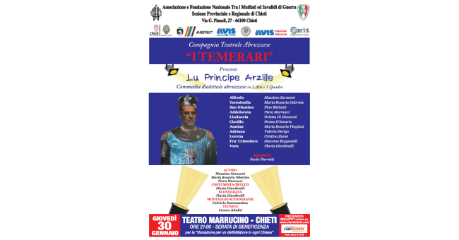 Lo spettacolo teatrale che si terrà il 30 gennaio, alle ore 21.00 presso il Teatro Marrucino di Chieti è finalizzato alla raccolta fondi per la “Donazione per un defibrillatore in ogni Chiesa”.