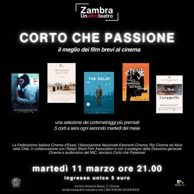 "Corto che passione", il progetto che coinvolge oltre 100 cinema italiani diventa progetto esclusivo anche per tre cinema abruzzesi fra cui il Cinema Zambra di Ortona gestito da Unaltroteatro di Lorenza Sorino e Arturo Scognamiglio.