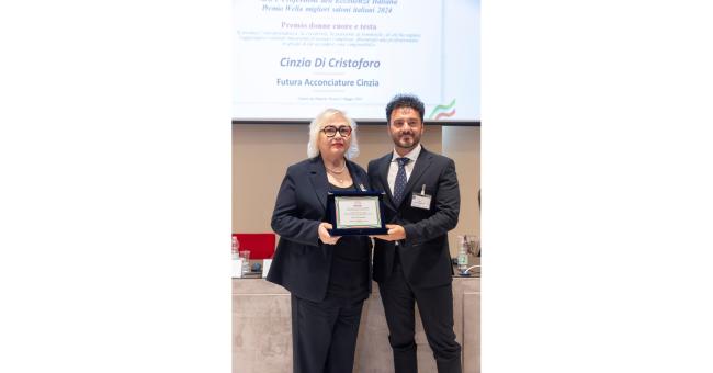 Il 21 maggio 2025 a Palazzo Montecitorio, sede della Camera dei deputati, durante la cerimonia “Arti e professioni dell’eccellenza italiana - Premio Wella ai migliori saloni italiani” Cinzia Di Cristoforo, di Pineto, ha ricevuto il Premio Donne Cuore e Testa.