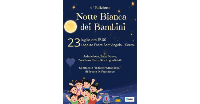 Tutto pronto per la quarta edizione della Notte Bianca dei Bambini in programma mercoledì 23 luglio a Scerni .