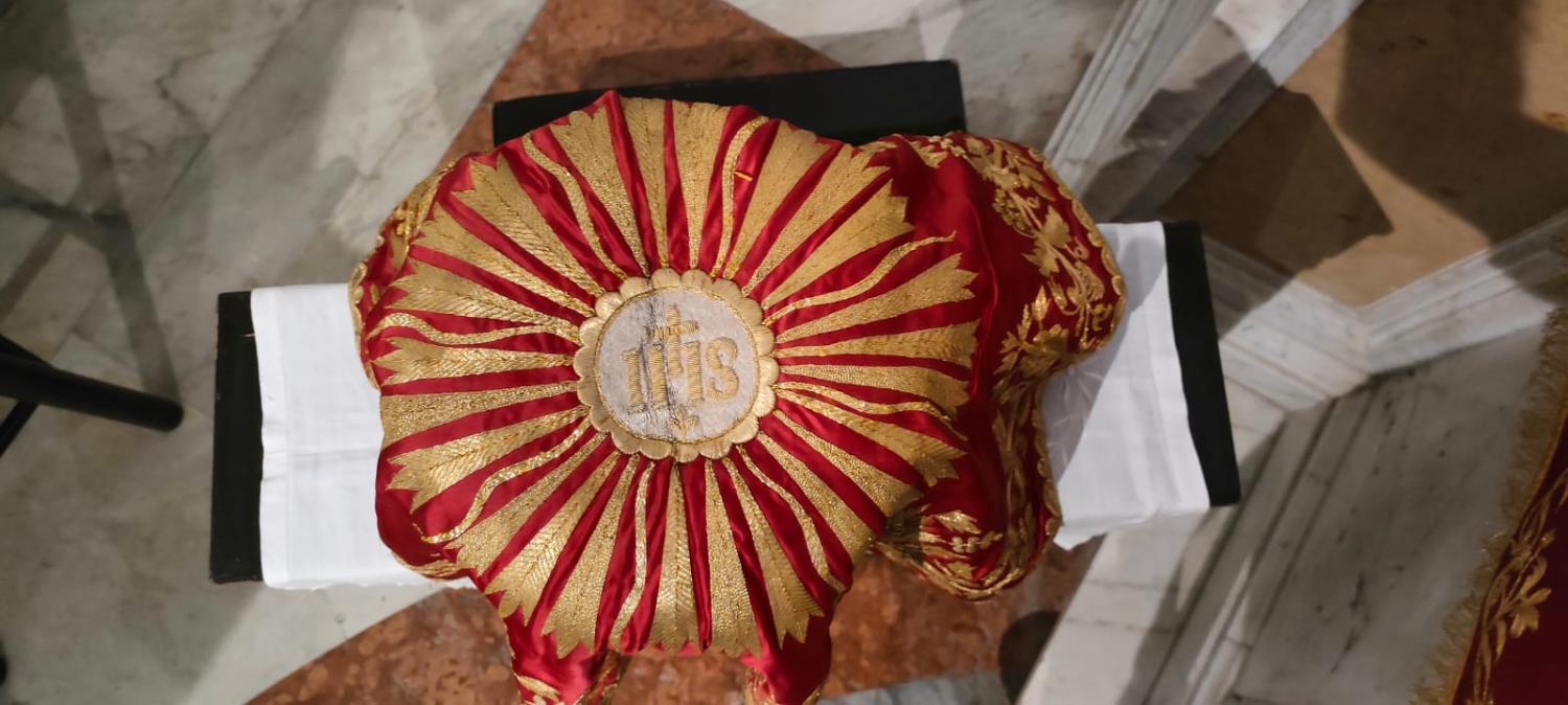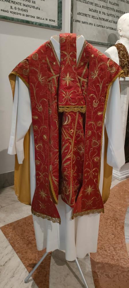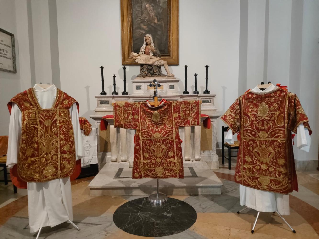 La mostra sarà allestita all’interno della basilica, nelle cappelle della Maddalena e dell’Immacolata: nella prima verranno esposti paramenti di colore rosso, nella seconda quelli di colore bianco.