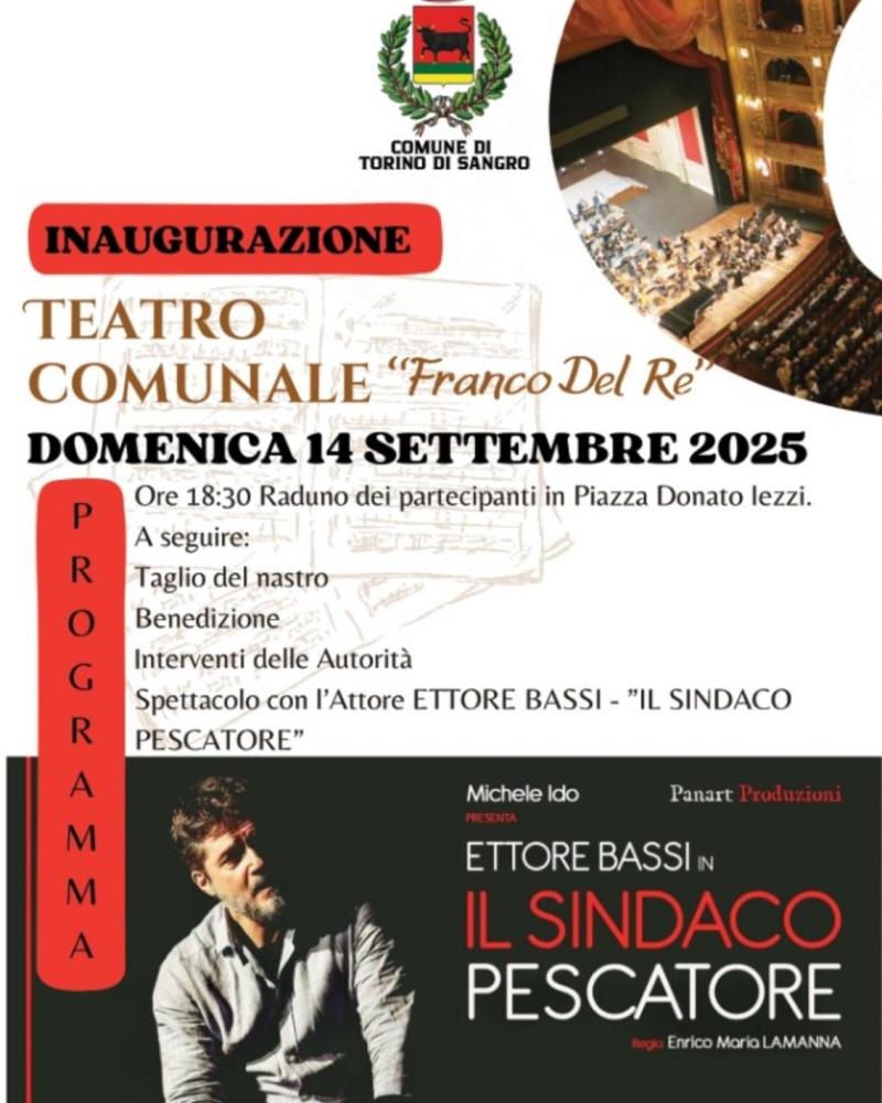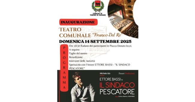 "Siamo entusiasti di annunciare l'inaugurazione del Teatro Comunale "Franco Del Re"! Un evento storico per la nostra comunità , frutto di impegno e dedizione di varie figure che si sono succedute negli anni": così in una nota Nino Di Fonso, sindaco di Torino di Sangro, unitamente all'amministrazione comunale locale.