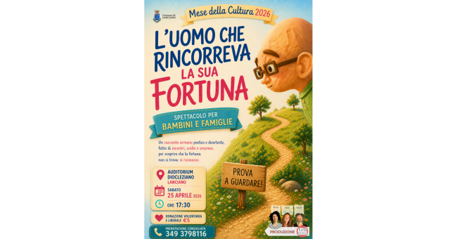 Nell'ambito del "Mese della Cultura 2026", promosso dall'Assessorato alla Cultura del Comune di Lanciano, l'associazione Teatro Possibile presenta lo spettacolo "L'uomo che rincorreva la sua fortuna", ispirato a un racconto popolare armeno, fedele alla tradizione orale e alla narrazione popolare.