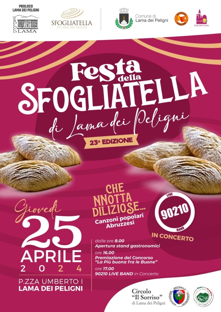 Giornata di festa a Lama dei Peligni con l'organizzazione della 23^ edizione dell'appuntamento dedicato al dolce tipico locale: la Sfogliatella di Lama dei Peligni.