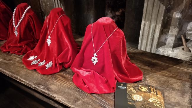 I maestri orafi pescaresi Fabio e Giampiero Verna, creatori di questo magnifico gioiello hanno voluto organizzare un incontro per parlare dell’arte orafa in Abruzzo e del suo futuro. Hanno partecipato al dibattito che si è svolto nella suggestiva cornice di Sextantio Albergo Diffuso: Ermanno De Pompeis, conservatore del Museo delle Genti d’Abruzzo, Gianfranco Marsibilio, presidente Ente Mostra dell’Artigianato Artistico di Guardiagrele, e Giampiero Verna, maestro orafo e mecenate. Presente anche Annunziata Taraschi, antropologa e anima di Sextantio.