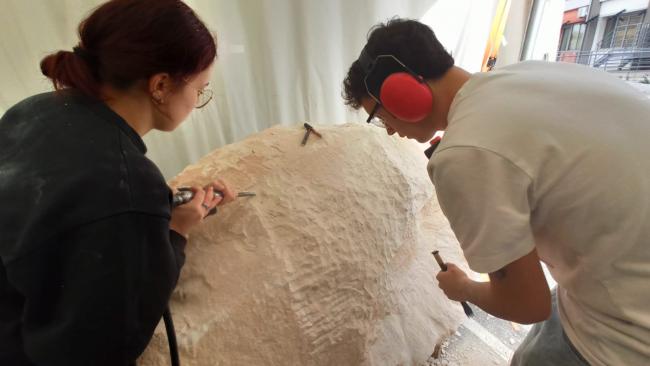 La pietra bianca della Maiella donata ai ragazzi dalla miniera di Addario Camillo Group di Lettomanoppello comincia a prendere forma: per questa edizione 2024 sono coinvolti nel progetto Fiabosco Academy i ragazzi del Liceo Artistico G.B. Vico di Chieti con i referenti Prof. Francesco D'Incecco, Vincenzo Marinelli e Giorgio Falcone, e del PÃ ntini Pudente di Vasto con il referente Prof. Giuseppe Colangelo.