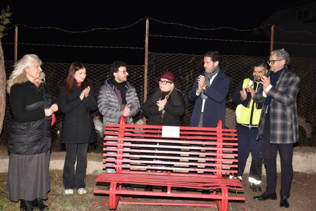 Ha dichiarato Pasquale Elia, Presidente di Erga Omnes: "Questa panchina, dipinta in un laboratorio svolto dai volontari di Erga Omnes per i ragazzi con disturbo del neurosviluppo, è un ulteriore passo di inclusione verso una società che rifiuta la violenza. È un simbolo di solidarietà, ma anche un invito alla riflessione passata, presente e futura: chi si siede su questa panchina non deve solo vedere il colore rosso, ma anche sentire la responsabilità di agire per un cambiamento reale."