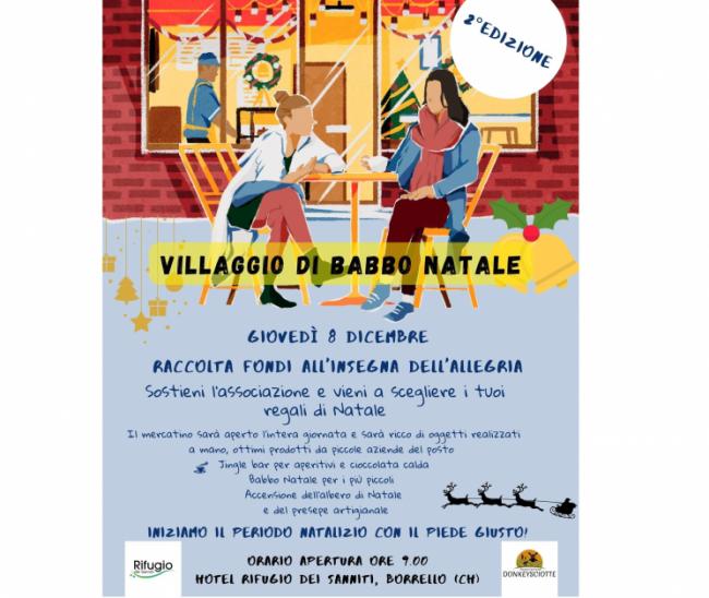 Iniziamo il periodo natalizio con il piede giusto. La proposta arriva da Borrello (CH), dove giovedì 8 Dicembre, per l'intera giornata, torna la 2°edizione dell'evento "Il Villaggio di Babbo Natale”, nell'hotel Rifugio dei Sanniti, con apertura al pubblico dalle 9.00 in poi in orario continuato. Il programma prevede: “Jingle bar” per aperitivi e cioccolata calda, Babbo Natale per la consegna delle letterine, l’immancabile accensione dell’albero INCLUSIVO all’uncinetto e del presepe artigianale e tanti stand con tanti prodotti artigianali locali.