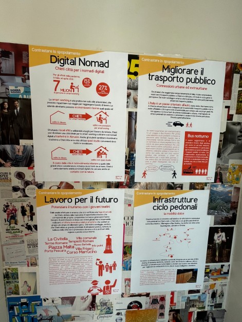 “Una bella occasione di confronto per cui ringraziamo i ragazzi e gli organizzatori – così De Cesare – Terremo presenti i dati emersi, alcuni interessantissimi sullo spopolamento e sui desiderata che ci arrivano dalle generazioni più giovani. Ottimo il lavoro di analisi organizzato tenendo conto della fotografia della città e del suo potenziale, grazie a un’interazione durata mesi e volta ad approfondire punti di forza e vulnerabilità della nostra situazione. È nostra intenzione promuovere un nuovo sviluppo della città, cercando di frenare, per invertire al più presto le tendenze negative che negli anni si sono tradotti proprio nella perdita di residenti. Interessanti gli spunti emersi che abbiamo preso come una sorta di bussola di cui tenere conto nel governo di Chieti e nella costruzione del suo futuro”.