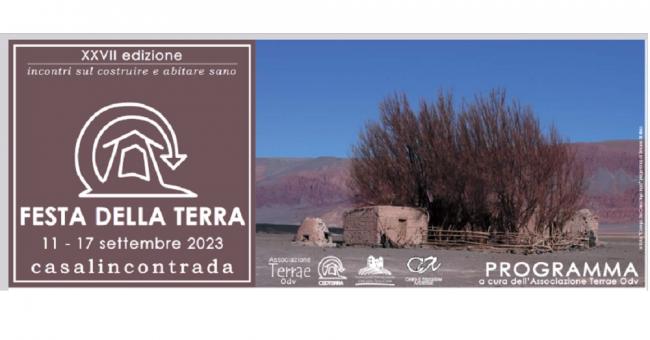 Prende il via oggi, a cura dell'associazione Terrae Odv, la settimana più importante dell'anno per conoscere e approfondire il mondo della terra cruda. Anche per la XXVII Edizione della Festa della Terra, che si terrà fino a domenica 17 settembre, addetti e appassionati si ritroveranno nel piccolo paese collinare di Casalincontrada per partecipare a workshop, seminari, presentazioni di libri, Tesi di Laurea e video su terra cruda e territorio, tavole rotonde.