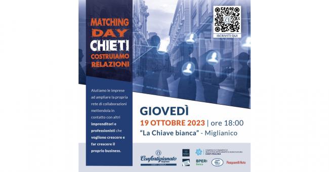 Arriva a Chieti il primo MatchingDay, iniziativa finalizzata a creare nuove occasioni di business per le imprese ed i professionisti dando loro l’occasione di far crescere la propria rete di contatti e di collaborazioni.