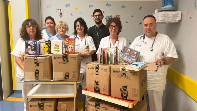 La donazione è stata accolta con gratitudine dal personale di turno (nella foto). I piccoli pazienti possono così trascorrere momenti di svago e immersione nella lettura, rendendo il tempo in ospedale un po' più sereno e ricco di storie interessanti.