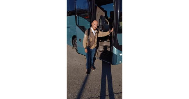 E tanto per ribadire il concetto della partenza, invia come saluto un’immagine che lo ritrae nell’atto di salire su un bus, con destinazione… segreta!