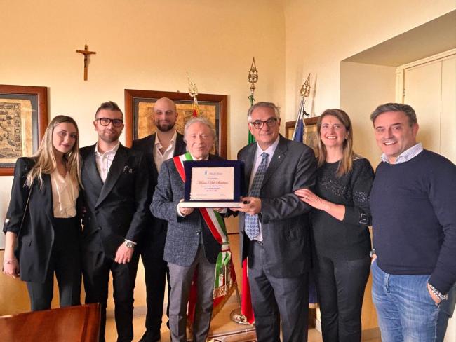 Marco Del Sindaco, maresciallo della Guardia di Finanza in quiescenza, insignito dell’onorificenza di Commendatore della Repubblica, è stato ricevuto in Comune, ad Atessa, dal sindaco Giulio Borrelli, per la consegna di una targa di encomio.