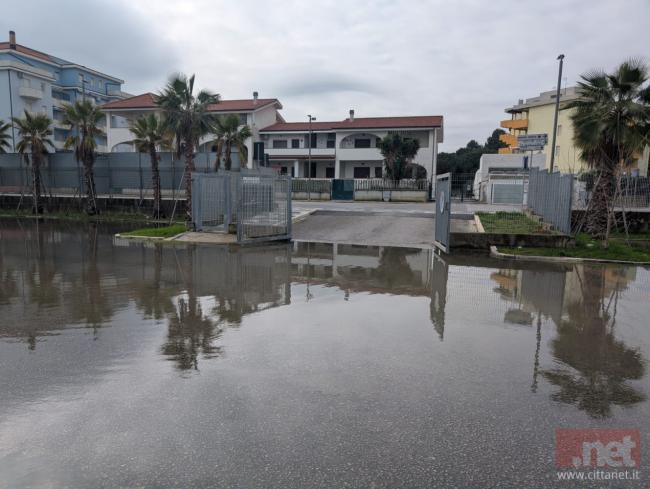 Una enorme distesa d’acqua. È quanto questa mattina è apparso a chi si è trovato di fronte il Palazzetto dello Sport a San Salvo Marina in via Ferdinando Magellano.
