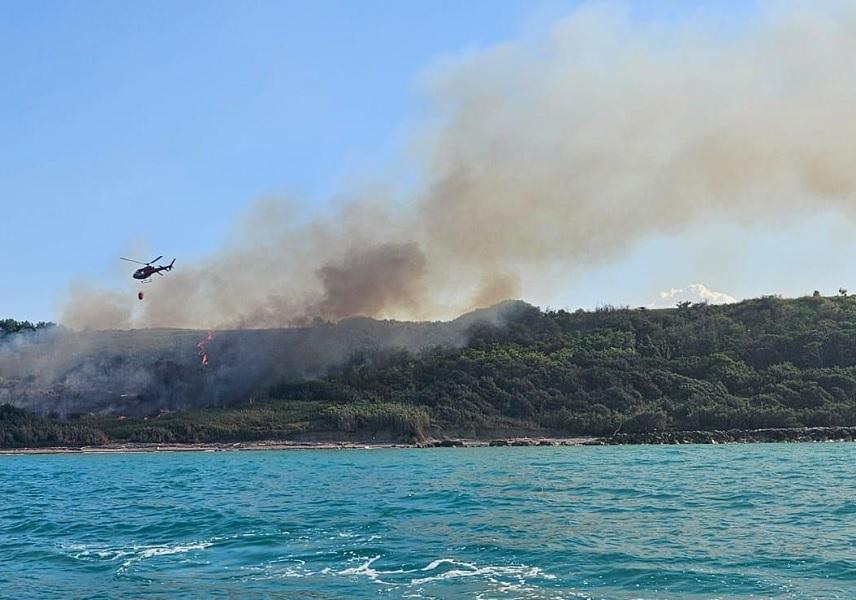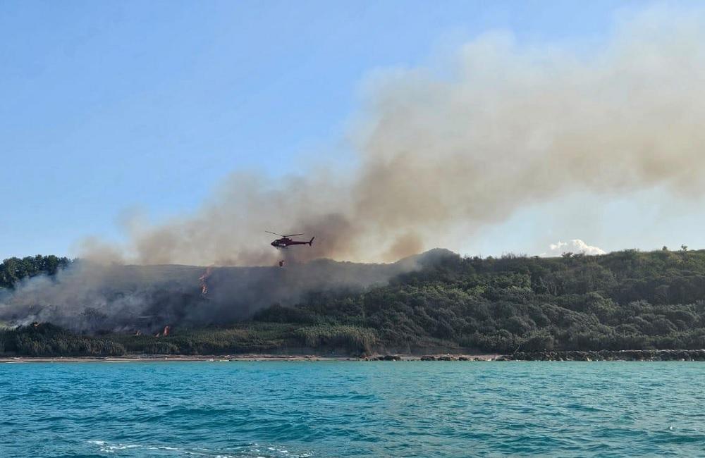 Vigili del Fuoco e Protezione Civile in azione per domare l'incendio divampato nel territorio della riserva di Punta Aderci a Vasto.
