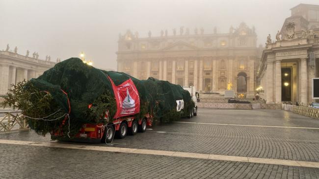 È arrivato a Piazza San Pietro l’Abete bianco di 26 metri donato dall’Abruzzo al Santo Padre. Sulla vicenda dell'abete natalizio nei giorni scorsi è intervenuto anche il vicepresidente della giunta regionale d'Abruzzo, con delega a Parchi e riserve, Emanuele Imprudente che, all'agenzia Dire, ha specificato: "Nessun albero sarà prelevato per tale scopo da ambienti naturali". La Regione Abruzzo, facendo seguito alla querelle sorta in merito alla donazione dell'albero del Papa, è intervenuta in collaborazione con il Comune di Rosello, il Comune di Palena ed i carabinieri forestali del nucleo biodiversità di Castel di Sangro, disponendo il prelievo all’interno del vivaio forestale regionale di Palena di un esemplare arboreo di abete bianco dell'età di 62 anni e dell'altezza di 26 metri. Il prelievo dell'esemplare si è ritenuto necessario a causa delle raggiunte dimensioni e della vicinanza a fabbricati e viabilità che ne rendevano non più compatibile la presenza per motivi di pubblica e privata incolumità”.