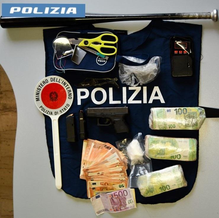 I controlli sono stati mirati nei confronti di soggetti dediti allo spaccio di stupefacenti e che si ritenevano detentori di armi non legalmente detenute e strumenti atti ad offendere e sono consistiti anche nell’esecuzione di diverse perquisizioni domiciliari, veicolari e personali. I sospetti delle forze dell’ordine si sono in effetti ritenuti fondati in quanto nel corso di una prima perquisizione presso l’abitazione di un soggetto di 44 anni, pregiudicato, veniva rinvenuta una pistola calibro 9x21 con due caricatori riforniti per un totale di 16 cartucce, un involucro contenente 55 grammi di sostanza stupefacente del tipo cocaina, nonché strumentazione per il confezionamento di dosi, una mazza da baseball, un coltello a serramanico e la somma di circa 30 mila euro in contanti. Successivi accertamenti esperiti nei confronti dell’arma da fuoco permettevano di stabilire che si trattava del provento di un furto in abitazione compiuto anni addietro in un’altra in provincia. Per tale motivo, l’uomo veniva arrestato in flagranza di reato per i delitti di detenzione ai fini di spaccio di sostanza stupefacente del tipo cocaina, detenzione abusiva e ricettazione dell’arma da fuoco.