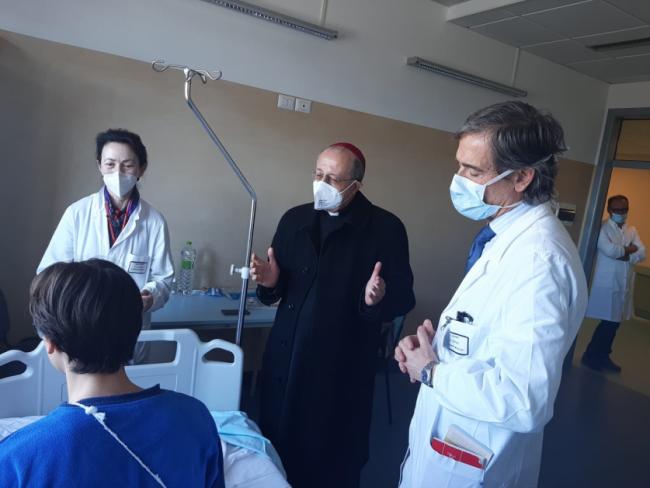 Mons. Forte si è intrattenuto con tutti i pazienti e con il personale, ai quali ha rivolto un grande apprezzamento per il lavoro svolto in un campo assai delicato, che richiede competenza professionale e grande umanità. Una speciale attenzione ha avuto per un adolescente ricoverato, al quale ha espresso un sentito incoraggiamento.