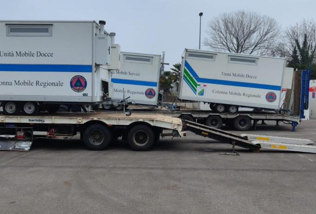 A bordo anche il materiale messo a disposizione dalla Protezione civile della Regione Abruzzo consistente in tende, riscaldatori, effetti letterecci e brandine, moduli igienico-sanitari e gruppi elettrogeni consegnati con 6 autotreni presso l’hub di Palmanova dove ha sede la Protezione civile del Friuli Venezia Giulia.