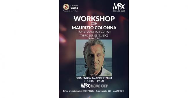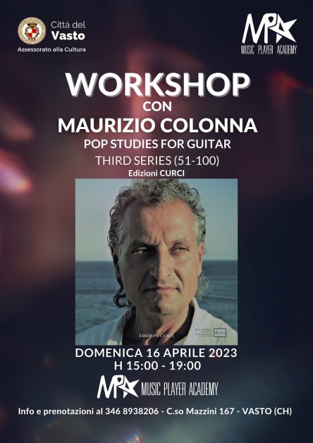 Workshop con Maurizio Colonna che firma la terza serie dei Pop Studies for Guitar (Edizioni Curci). L'appuntamento è per domenica 16 aprile, dalle 15:00 alle 19:00 presso la Music Player Academy a Vasto.