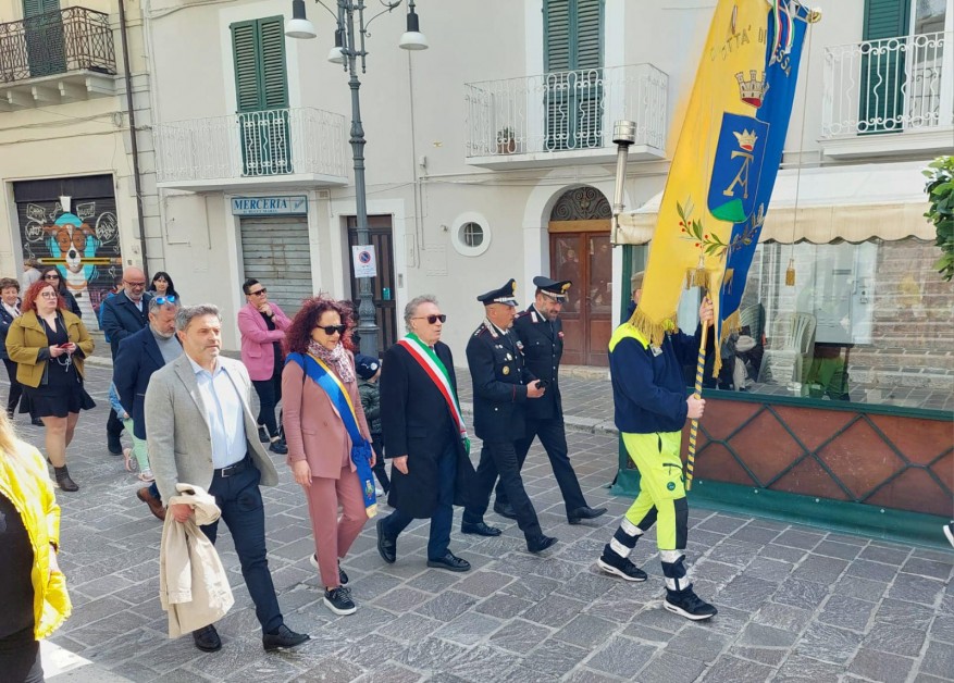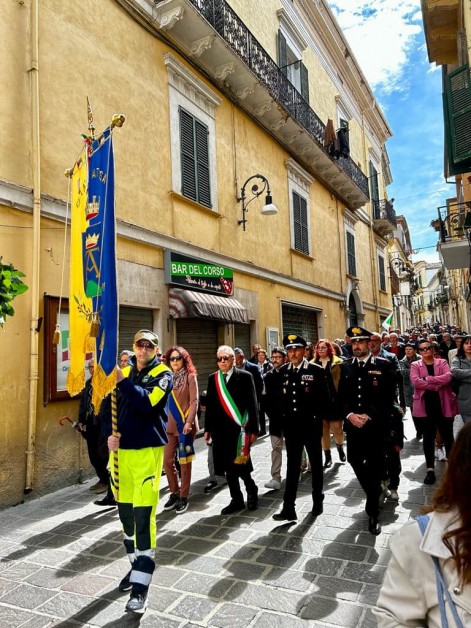 Da qui il corteo si è diretto in Piazza Benedetti, dove è presente il monumento dei caduti, percorrendo lentamente Corso Vittorio Emanuele. Una volta sul posto c’è stata la deposizione della corona d’alloro con il rituale omaggio del sindaco Giulio Borrelli ai caduti.