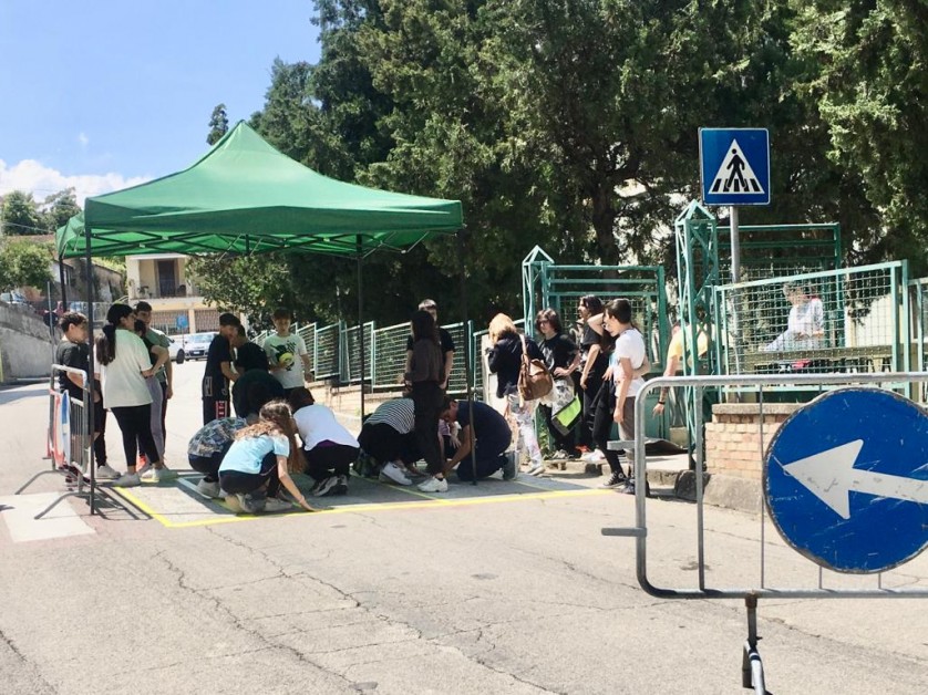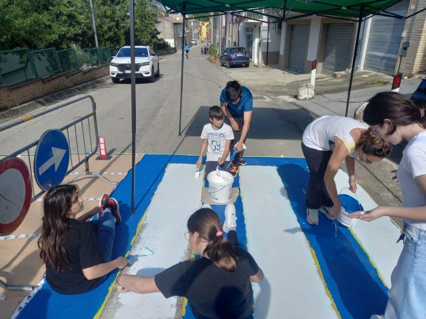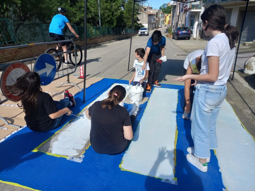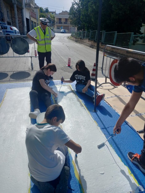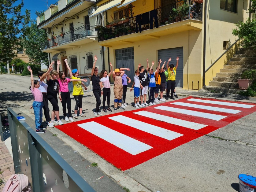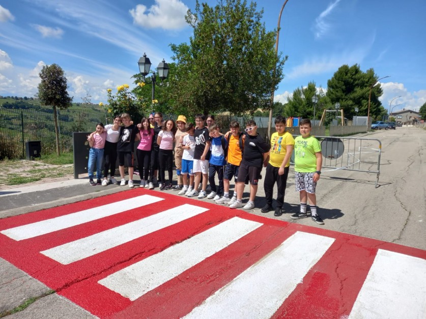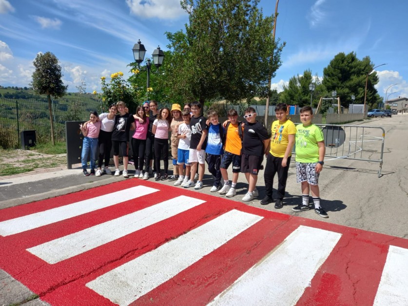 Attraversamenti pedonali realizzati dai ragazzi della Scuola secondaria di primo grado di Pollutri con i progetti "Scuola in sicurezza" e "Un murales a strisce".