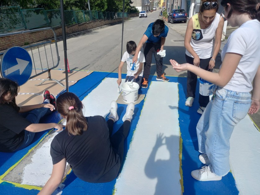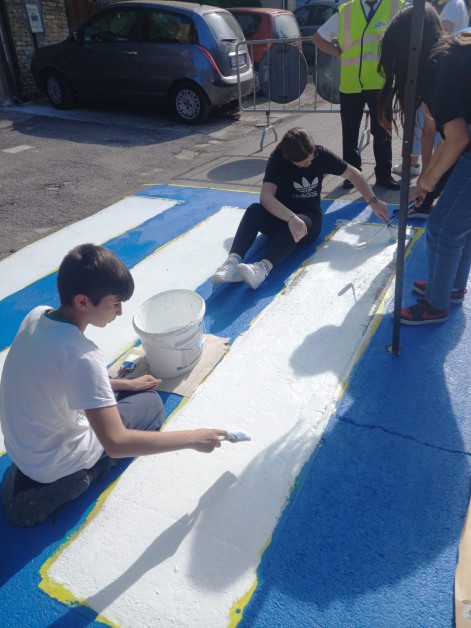 Gli attraversamenti pedonali, realizzati interamente dai ragazzi, hanno inoltre, la finalità di coltivare il senso estetico dei luoghi in cui essi vivono e far sviluppare in loro l'amore per il bello e il rispetto per il contesto che li circonda.