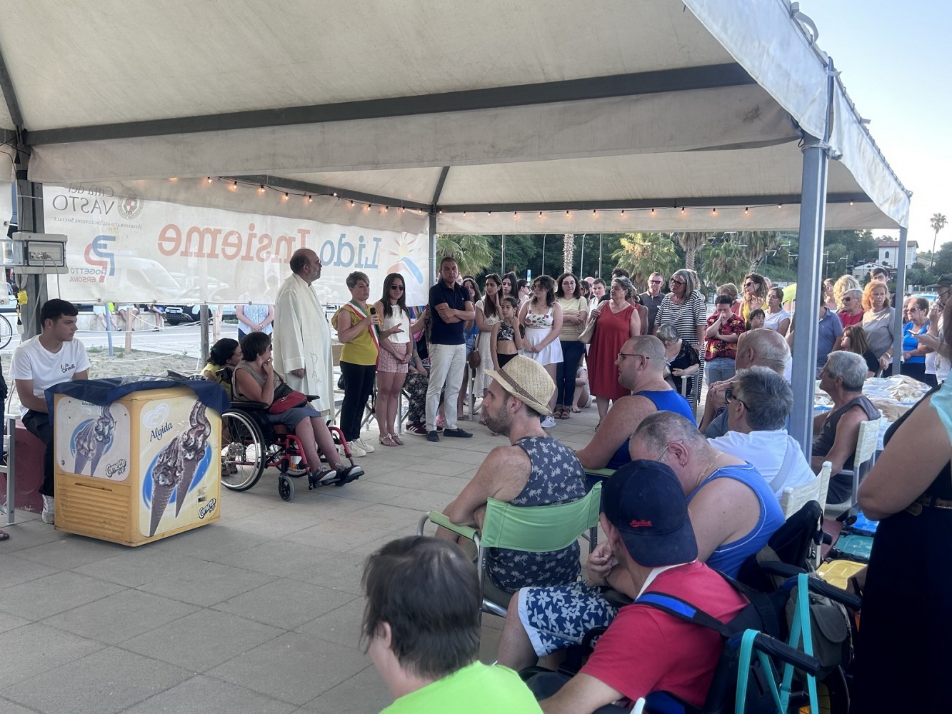 Dopo la benedizione di Padre Luigi Stivaletta, parroco di Santa Maria Stella Maris, ha preso la parola il vice sindaco Licia Fioravante che ha voluto ricordare che il Lido Insieme, giunto alla sesta annualità, è un progetto fortemente voluto dall’Amministrazione comunale ed in particolare dall’assessore al Welfare e all’Inclusione Sociale, Nicola Della Gatta. Il progetto è stato, infatti, inserito nel vigente Piano Sociale Distrettuale e, quindi, reso un servizio stabile nell'offerta di inclusione per la comunità vastese e a beneficio della numerosissima popolazione turistica.