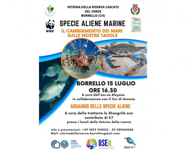 Il 15 Luglio 2023 IRBIM CNR in collaborazione con l’Associazione Alcyone ODV terrà una conferenza sulle “Specie aliene marine. Il cambiamento dei mari sulle nostre tavole” che si svolgerà presso il Centro visite della Riserva Naturale Regionale Oasi WWF Cascate del Verde di Borrello in Via Silvio Spaventa 1, alle ore 16:30 con la partecipazione della Trattoria Lo Shangrilà che proporrà dei piatti partendo da due nuove specie che abitano il nostro mare.