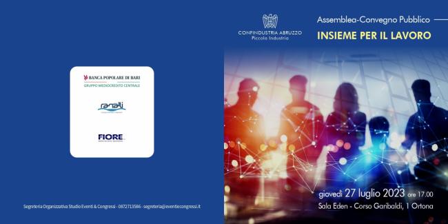 È promossa dal Presidente della Piccola Industria di Confindustria Abruzzo Giuseppe Ranalli l’assemblea-convegno pubblico dal titolo “Insieme per il lavoro” che si terrà giovedì 27 luglio alle ore 17:00 nella Sala Eden in Corso Garibaldi 1 ad Ortona.