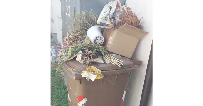 In poco tempo le foto sono diventate virali sui social network e app di messaggistica, accendendo l’indignazione di tutta la cittadinanza. Nelle immagini si vede un cassonetto dei rifiuti stracolmo di immondizia e fiori secchi, erba alta qua e là nonché una zampa di suino in avanzato stato di decomposizione.