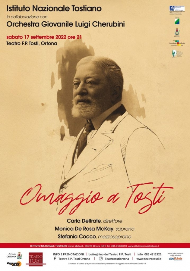 A cavallo tra Ottocento e Novecento, l'Italia di Verdi, Puccini e Mascagni fu patria anche di un altro straordinario musicista che, contrariamente a tanti suoi contemporanei, non scrisse mai per la scena: si tratta di Francesco Paolo Tosti, che l'Orchestra Giovanile Luigi Cherubini ha accolto l'invito a celebrare con un concerto nel teatro a lui intitolato a Ortona, sua città natale, sabato 17 settembre.