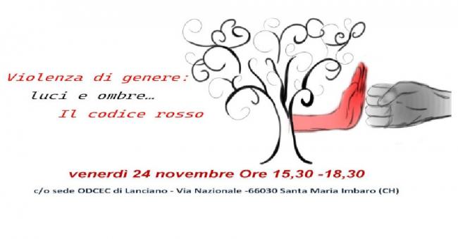 In occasione della Giornata contro la violenza contro le donne, tema di drammatica attualità in un anno segnato da un altissimo numero di femminicidi, l’Ordine dei Dottori Commercialisti e degli Esperti Contabili organizza il convegno “Violenza di genere: luci e ombre … Il codice rosso”. L’evento si terrà presso la sede dell’Ordine di Lanciano in via Nazionale a Santa Maria Imbaro. «La partecipazione all'intero evento per gli iscritti farà maturare fino a 3 CFP dei Dottori Commercialisti e degli Esperti Contabili materia E.1.1» rende noto l’Ordine.