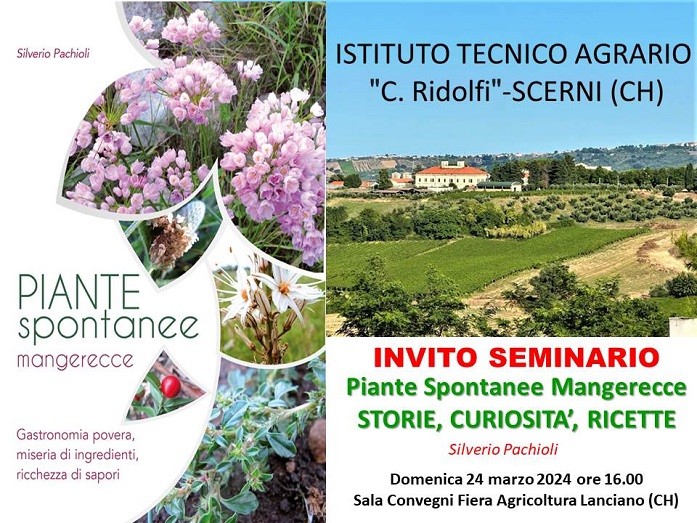 A questo programma l’ISTITUTO “Ridolfi” aggiunge due importanti seminari che si svolgeranno nel pomeriggio di domenica 24 marzo, dalle ore 15.00, all’interno dell’area convegni dell’Ente Fiera.Il primo è dedicato alla peronospora della vite, e avrà come titolo: “PERONOSPORA: ieri, oggi, domani”. Il secondo, invece, sarà dedicato alle famiglie, ai ristoratori, ai curiosi e agli appassionati, e avrà come titolo: “PIANTE SPONTANEE MANGERECCE: Storie, curiosità, ricette”.