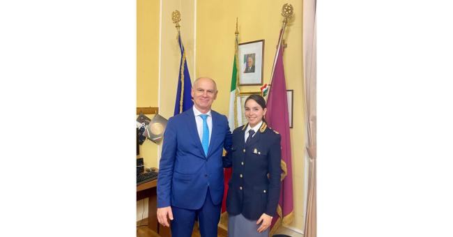 Nella foto Gloria Verzella con il Questore Aurelio Montaruli