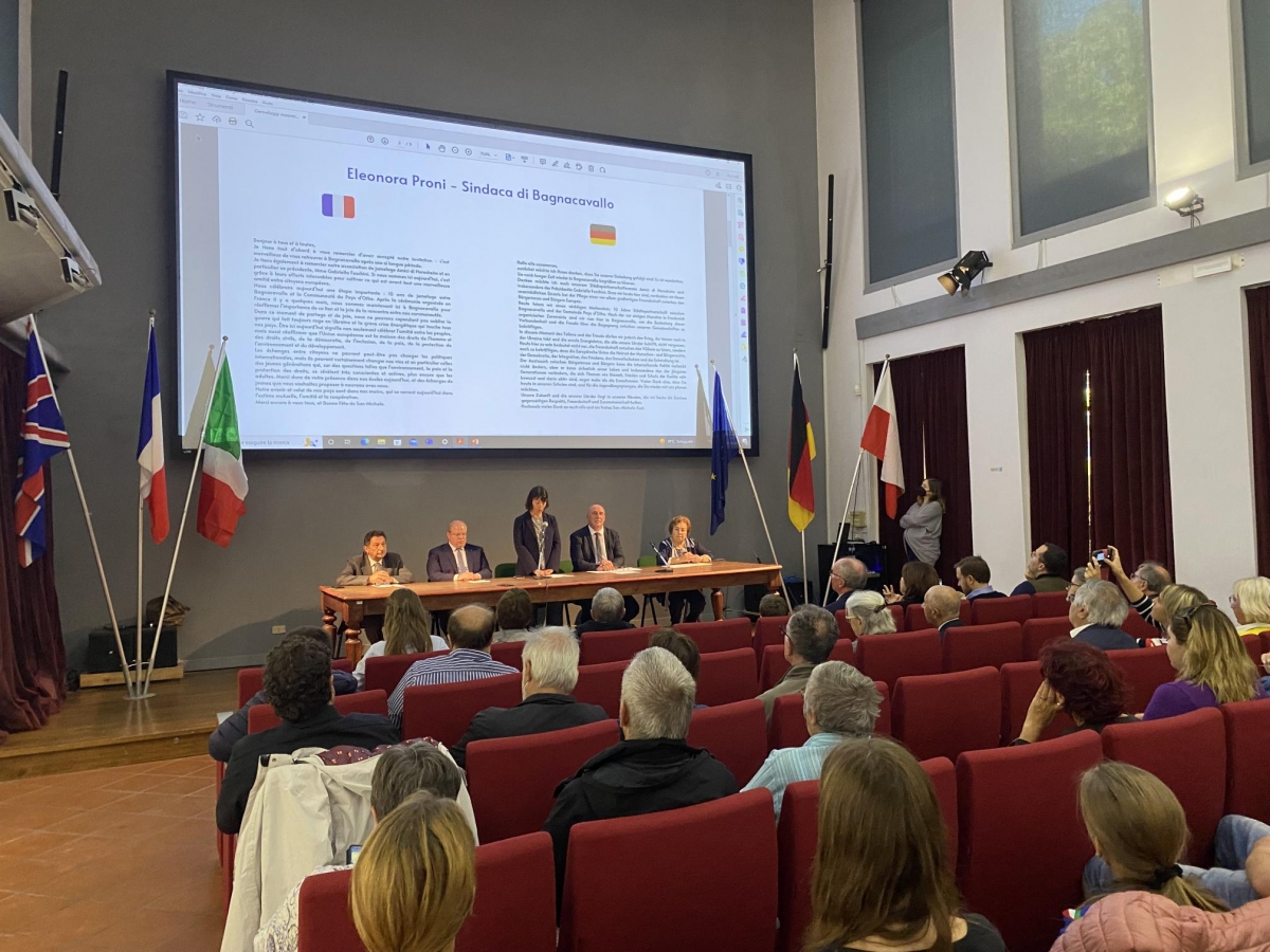 anniversario del gemellaggio di Bagnacavallo con Le Pays d'Othe (Francia). E’ stata l’occasione per condividere con i bagnacavallesi numerosi momenti sia istituzionali, sia conviviali, con la presenza dei sindaci di Neresheim, Thomas Häfele e di Pollutri, Nicola Mario Di Carlo e la presidente dell’associazione Amici di Neresheim Gabriella Foschini.