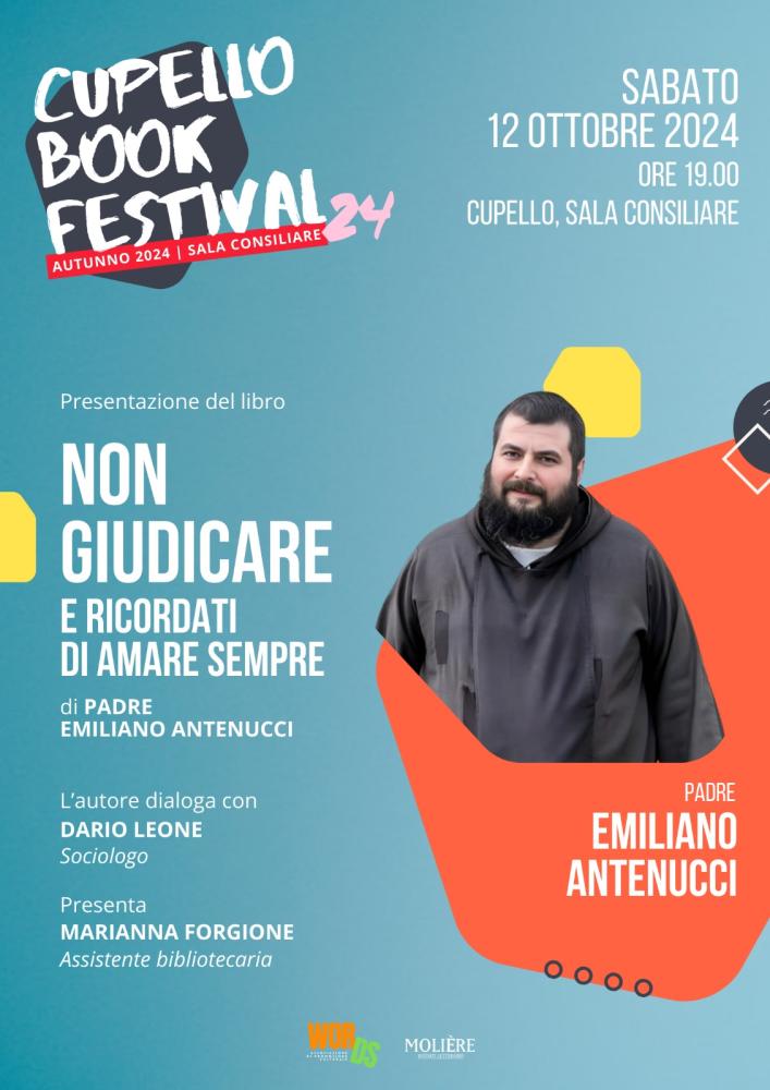 Fari puntati sul libro “Non giudicare. E ricordati di amare sempre”, di Padre Emiliano Antenucci, sacerdote cupellese. L'autore dialogherà con il sociologo Dario Leone. A presentare l'appuntamento sarà Marianna Forgione, assistente bibliotecaria.