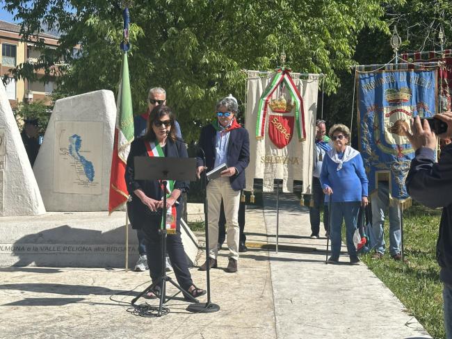 Il commissario straordinario Ernesta D’Alessio, in rappresentanza del Comune di Sulmona, ricordando le motivazioni del conferimento, ha sottolineato il sacrificio di tanti giovani patrioti che, con il loro impegno nella lotta contro l'occupazione nazifascista, hanno scritto pagine di storia da tramandare alle giovani generazioni.