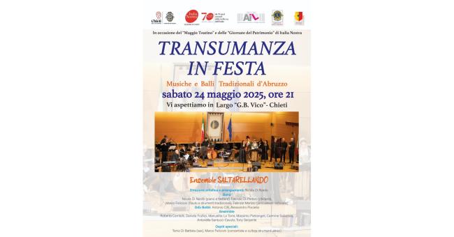 Sabato 24 maggio, alle ore 21, a Chieti, in Largo G.B. Vico, nell’ambito del “Maggio Teatino” e a conclusione delle “Giornate del Patrimonio” di Italia Nostra, si terrà un concerto vocale e strumentale, con musiche e balli della tradizione popolare abruzzese.