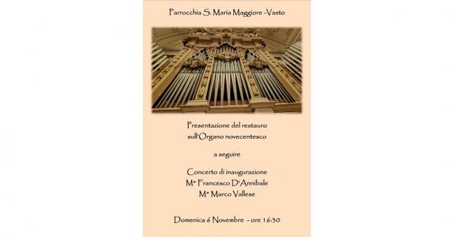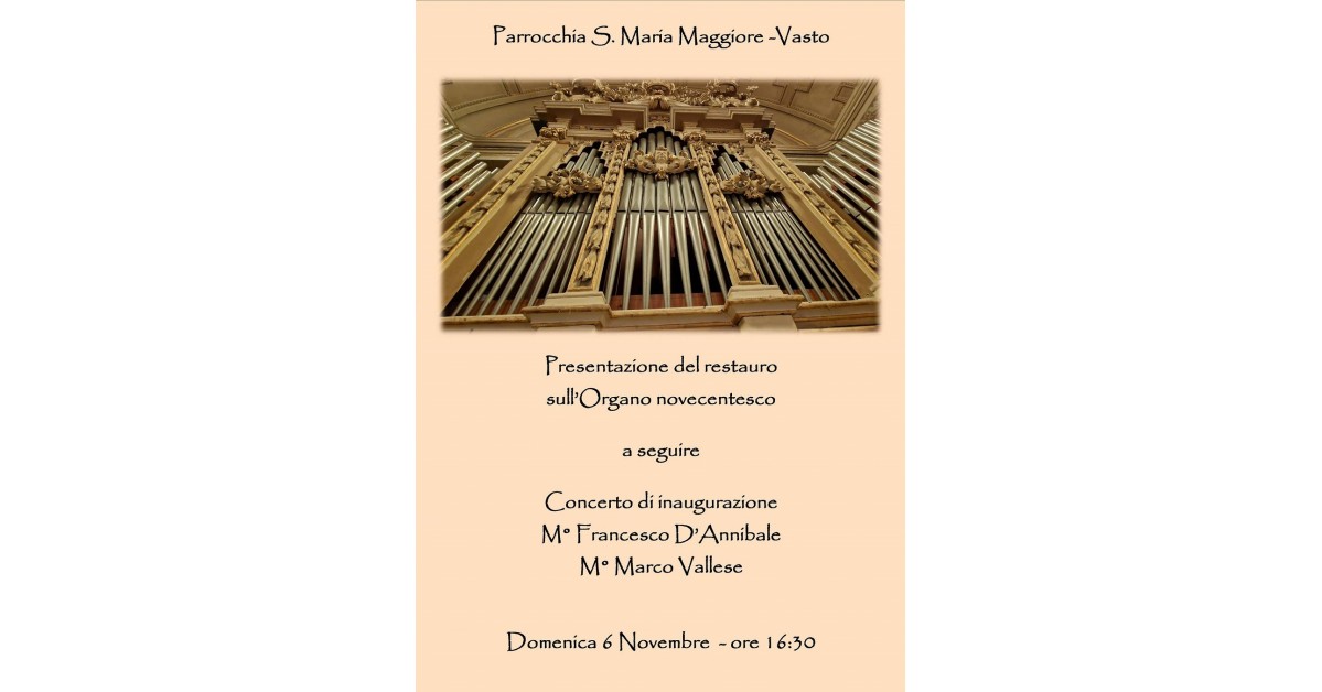Domenica 6 novembre alle ore 16:30 nella Chiesa di Santa Maria Maggiore a Vasto vi sarà un pomeriggio culturale all’insegna della musica sacra.