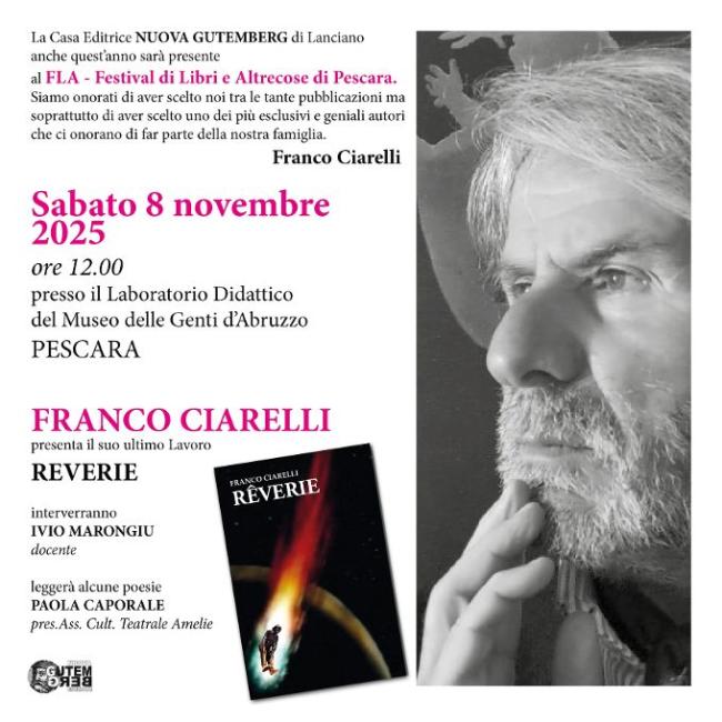 All’interno del ricco programma del festival, sabato 8 novembre alle ore 12.00, presso il Laboratorio Didattico del Museo delle Genti d’Abruzzo (Pescara), si terrà la presentazione del nuovo lavoro di Franco Ciarelli, intitolato Réverie.
