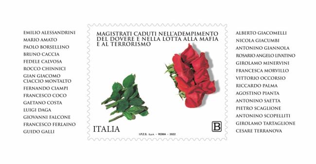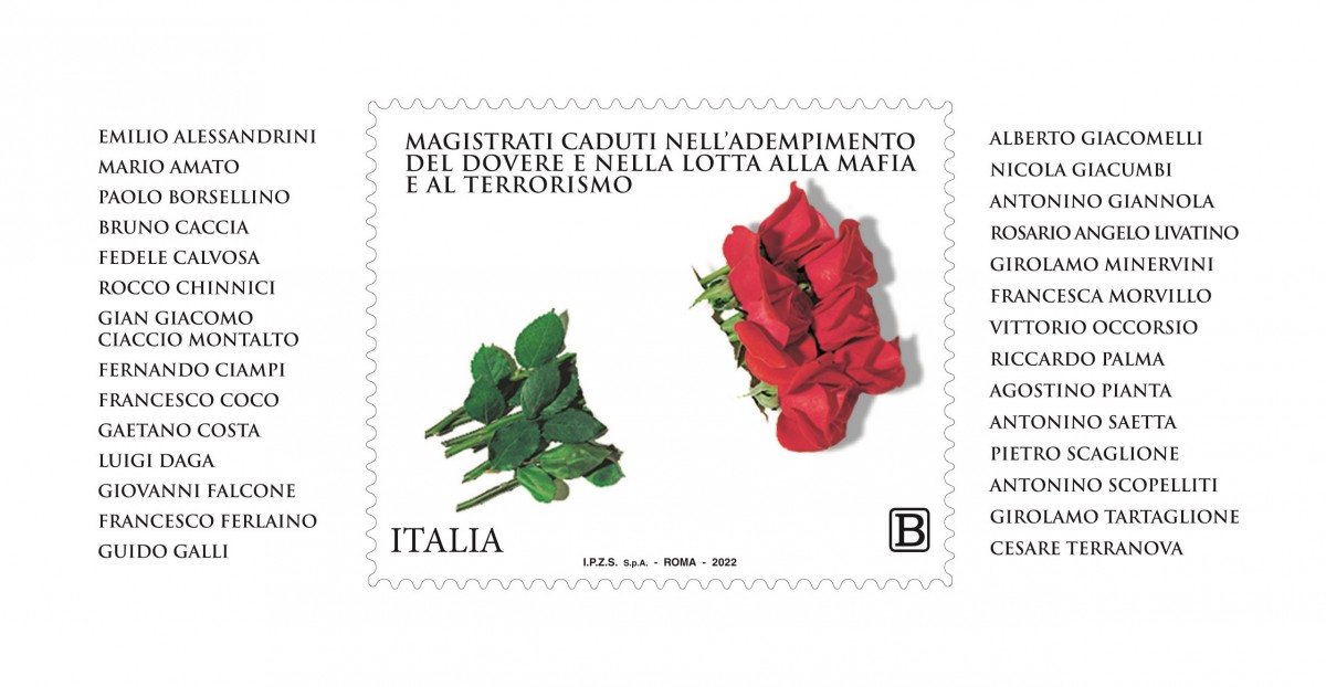 Poste Italiane comunica l'emissione dal Ministero delle Imprese e del made in Italy un francobollo ordinario appartenente alla serie tematica “IL SENSO CIVICO” dedicato ai Magistrati caduti nell’adempimento del dovere e nella lotta alla mafia e al terrorismo, relativo al valore della tariffa B pari a 1,20€. (racchiuso in un foglietto)