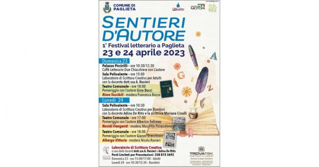 Nuovo appuntamento culturale a Paglieta. Arriva la prima edizione del Festival Letterario “Sentieri d’Autore”, organizzato dall’amministrazione comunale in collaborazione con la Biblioteca comunale e il supporto di alcune cittadine, nei giorni 23 e 24 aprile.