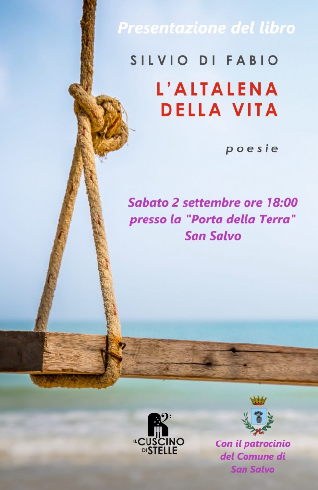 Sabato2 settembre alle ore 18:00 presso la “Porta della Terra” del Comune di San Salvo, l’autore Silvio Di Fabio presenterà la sua ultima opera, il libro di poesia dal titolo “L’altalena della vita”.