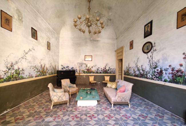 Spalancando le porte della loro dimora la coppia di svedesi ha permesso a tutti di ammirare l’arte fiorita di Gaetano Paloscia, pittore di origini pugliesi (nato nel 1871 a Terlizzi –BA) ma vissuto in gran parte in Abruzzo, a Francavilla al Mare, già dai primi anni del Novecento fino alla sua scomparsa nel 1942. L’artista infatti era molto amico di Francesco Paolo Michetti che lo incaricò di decorare il circolo cittadino La Sirena, e dal quel lavoro in poi molti signori dell’alta borghesia lo chiamarono per impreziosire le proprie dimore, come Giulio Antonucci, medico curante di Francesco Paolo Michetti, che gli commissionò di dipingere con temi floreali la casa di Scerni (una porzione di Palazzo d’Avalos appunto) in occasione del matrimonio del figlio Severino nel 1927. In un angolo del muro del salotto, tra i fiori, si vedechiaramente la firma del pittore con la data di fine lavori, nel 1928.