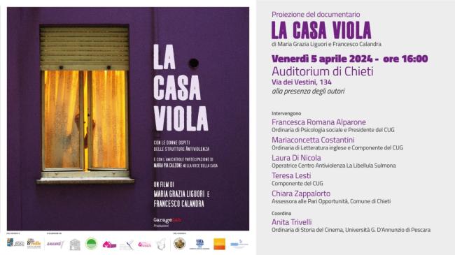 Dopo il recente ritorno in sala e la selezione da parte di una serie di importanti festival cinematografici internazionali (Visions du Réel de Nyon, NewYork International Women Festival, Dublin Movie Awards e Docudì Festival del Documentario), La Casa Viola, il documentario di Maria Grazia Liguori e Francesco Calandra sulla questione della violenza contro le donne, è di nuovo al centro di una manifestazione culturale dell’Università “G. d’Annunzio”.