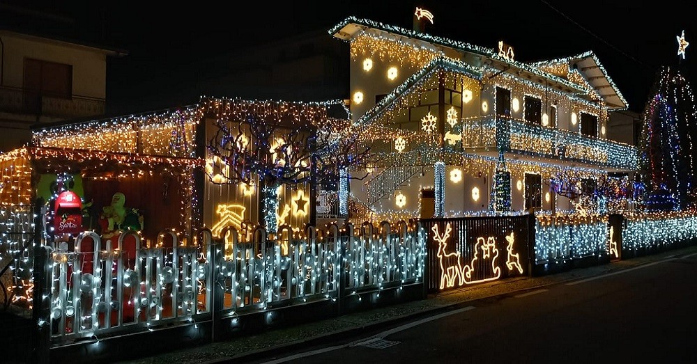 Oltre 73 mila luci a led, il tetto completamente illuminato, un presepe con capanna, natività, pastori, animali e laghetto sistemati con oltre 800 viti, la casa di Babbo Natale, un caminetto e naturalmente prese, ciabatte, prolunghe che tengono insieme uno spettacolo da favola. Anche per le festività 2023 è tornata ad accendersi con tante nuove decorazioni e l'immancabile musica la casa di Nevio Clivio che, come da alcuni anni a questa parte, ogni giorno, da fine agosto inizia a preparare le installazioni luminose, sostenuto dai suoi due figli Massimo ed Emiliano e dalla moglie Annagiulia.