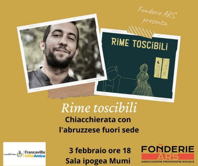 Fonderie ARS, associazione di promozione sociale che si occupa di arte, teatro e cultura, organizza una chiacchierata con Gino Bucci, meglio conosciuto come L'abruzzese fuori sede, autore di “Rime toscibili”, edito da Ricerche & Redazioni.