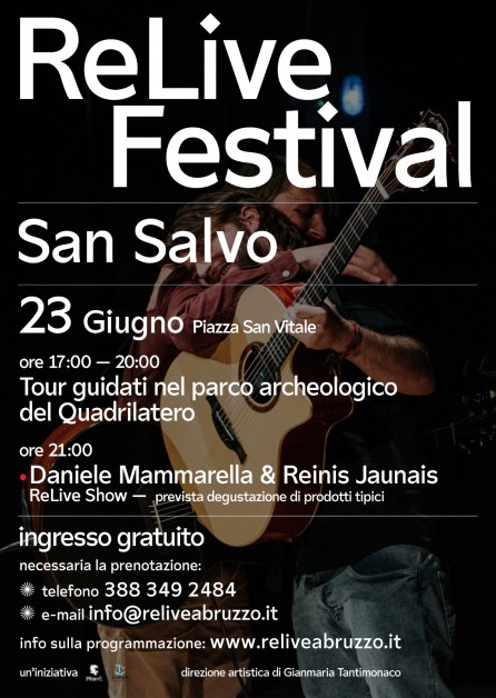 “Il festival ReLive – evidenzia il direttore artistico dell’associazione Gianmaria Tantimonaco – si snoderà attraverso otto date, delle quali la metà qui a San Salvo, che raccoglie associazioni, aziende grandi e piccole per territorio, per un progetto che promuove le eccellenze del territorio da diverse angolazioni per generare energia e fare sinergia”.
